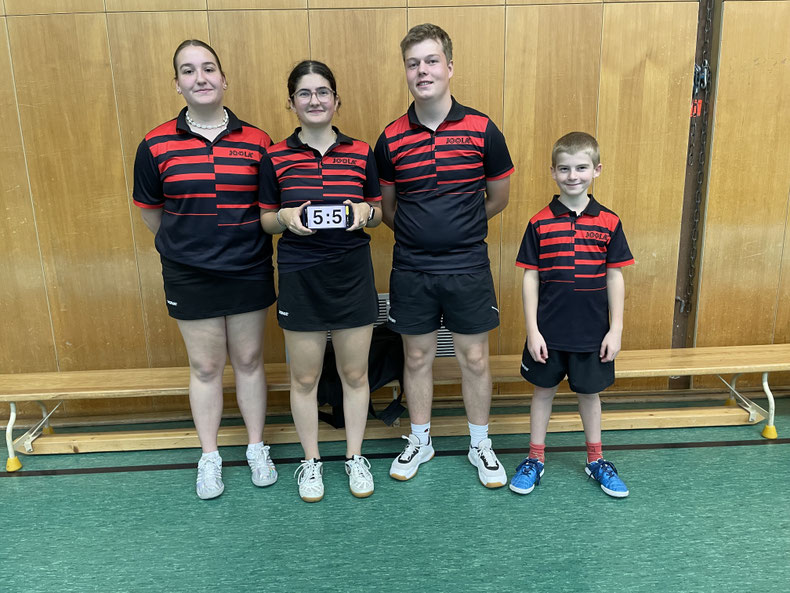 Das erste Erfolgserlebnis stellte sich gegen den Gegner aus Ebersbach ein. Arne Stützle mit Antonia Wind setzten mit 11:2, 11:6 und 11:4 die Weichen für einen erfolgreichen Verlauf der Begegnung. Beide siegten in ihren ersten Einzelbegegnungen mit jeweils 3:0 Sätzen. Matteo Geist, gegen die Nr. 2 des Gastgebers, musste sich im 5. Satz geschlagen geben. Lara Kübler war an diesem Tag nicht zu schlagen, Siege gegen die Nr. 2 und 3, endeten 3:1 bzw. 3:0. Antonia Wind, die das Abschlußspiel im 4. Satz abgeben musste, war für den Gesamtsieg nur noch eine Ergebniskorrektur für den TSV Ebersbach. Arne Stützle ebenfalls ohne Spielverlust konnte sich gegen die Spitzenspielerin erst im 5. Satz schadlos halten.