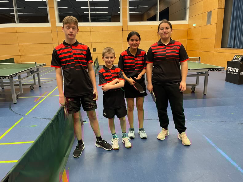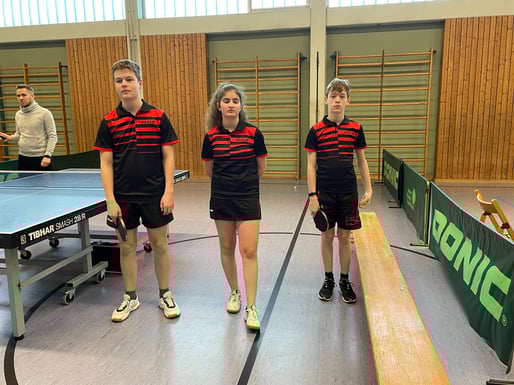Knapp an einem Punktgewinn schrammte der Gastgeber vorbei. Eine 3:0 Führung sollte nicht ausreichen, um mindestens einen Punkt zu ergattern. Das Team um Lara Kübler, Julian Ruf und Marie Süßer startete verheißungsvoll in die Partie. Spannende und knappe Spielausgänge in den ersten drei Begegnungen waren die Regel. Die Doppelpaarung Kübler/Ruf erspielte sich den ersten Punkt mit 13:11, 13:11, 10:12 und 11:7. Lara Kübler gegen die Nr. 2 der Gäste setzte sich mit 3:2 durch, nachdem sie zwischenzeitlich mit 2:1 im Rückstand lag. Julian Ruf hatte mit der Nr. 1 zu tun. Er konnte sich nach 11:7, 12:10, 9:11, 4:11 und 13:11 durchsetzen. Danach wachte der Gegner auf, sechs Siege brachten den vorzeitigen Sieg. Lara Kübler konnte mit 12:10, 14:12, 11:13 und 11:6 den 4. Punkt im letzten Spiel erringen. Trotz der Niederlag verbleibt die Mannschaft an der Tabellenspitze.