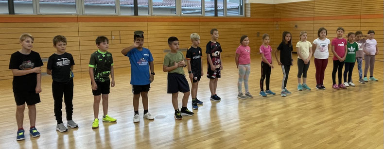 Drei Trainer gaben ihr Stelldichein beim Training mit den Klassen 3 der Grundschule Dettingen. Unter fachlicher Anleitung wurden den Kindern die ersten Grundbegriffe und -techniken in spielerischer Art und Weise beigebracht. Von 8:30 Uhr bis 10:00 Uhr waren 18 Kinder, eine Lehrkraft mit einer Praktikantin sportlich beschäftigt.