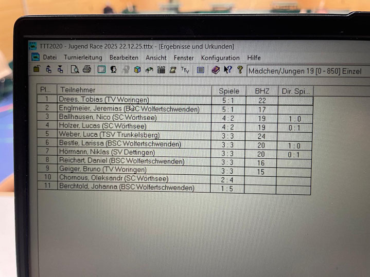 1. Bezirksranglistenturnier der AK 13-19 am 10.1.2026 in Schwabmünchen